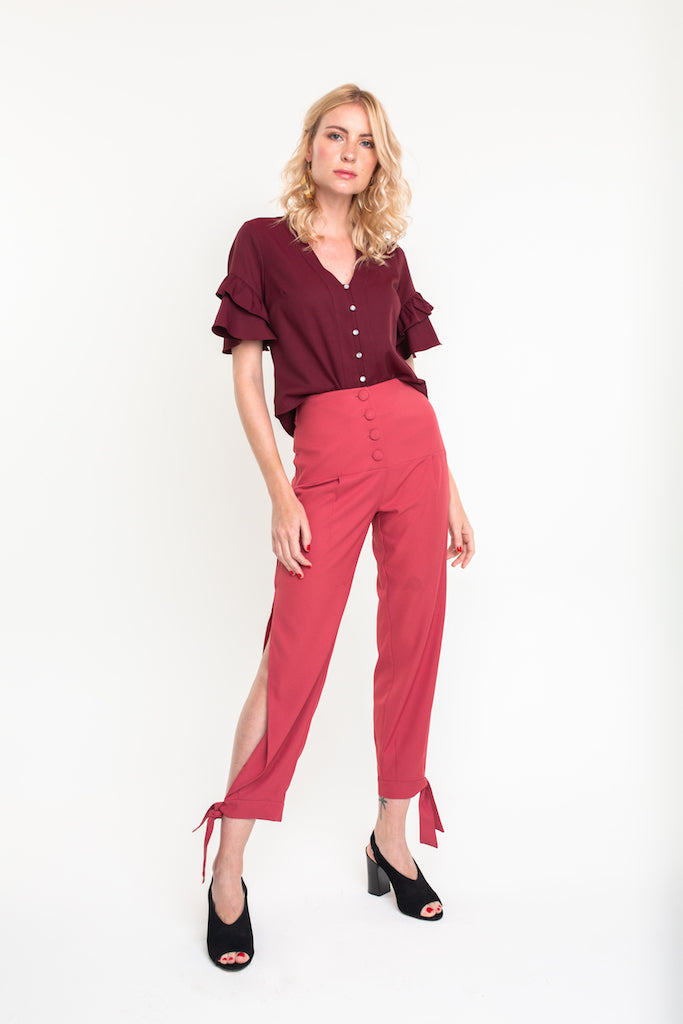 Confeccionada em crepe, a Blusa Miranda possui botões perolados na parte da frente e babados nas mangas.