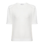 A Blusa Paula, possui modelagem ajustada ao corpo, decote careca e mangas curtas com uma pequena "ombreira".