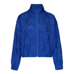 A Bomber Thais possui modelagem de mangas longas e fechamento frontal por zíper com elástico na barra e nos punhos. Confeccionada em tecido bordado, este modelo possui forro.