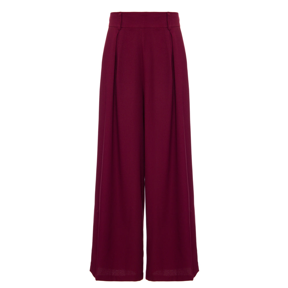 A calça pantalona Eve possui cintura alta com fechamento lateral por zíper invisível, bolsos laterais e aplicação de passantes. Confeccionada em Crepe apresenta prega central na parte da frente.