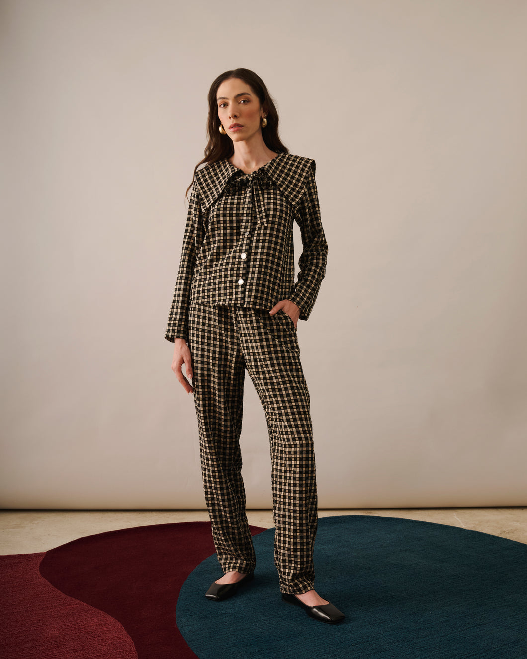 Confeccionada em viscose, a Calça Mabel apresenta caimento leve e toque confortável. A modelagem reta com pernas amplas garante fluidez ao vestir, enquanto o cós com elástico e amarração proporciona ajuste prático e versátil.