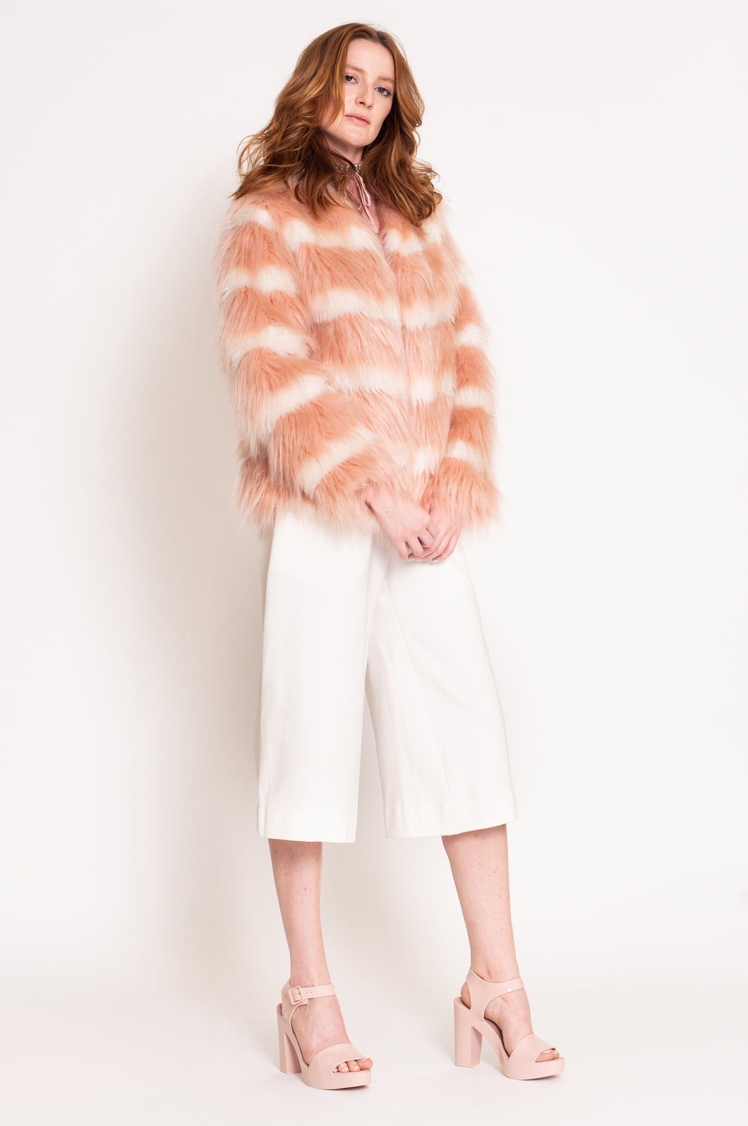 O Casaco Penelope confeccionado em tecido de pelo fake possui forro e comprimento alongado, sem fechamento. Perfeito para produções mais elaboradas em dias de inverno.