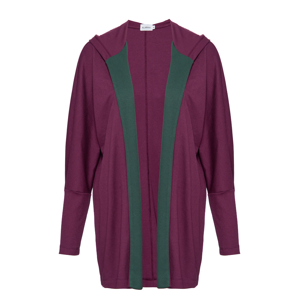 O Casaco Lídia tem comprimento midi, decote arredondado, capuz e mangas longas. Confeccionado em moletom texturizado, possui caimento leve e toque macio.