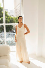 O Macacão Margot é confeccionado em malha fria, proporcionando conforto e caimento impecável. Seu design é marcado pelo franzido em toda parte de cima, valorizando a silhueta de forma sutil e elegante. As alças largas trazem sustentação e equilíbrio ao decote em V, enquanto a modelagem reta alonga a silhueta com sofisticação.