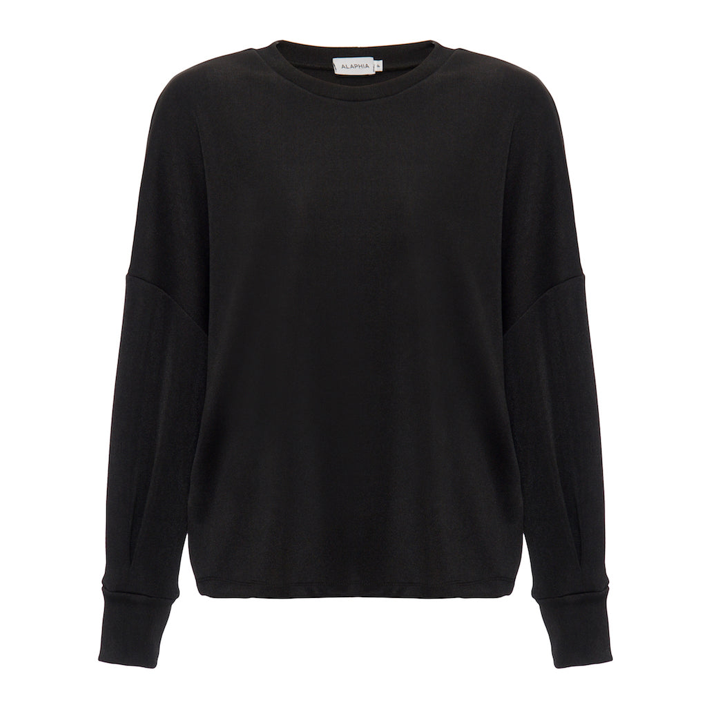 O moletom Helena, confeccionado em tecido de bandagem, possui toque acetinado, modelagem ampla, mangas compridas e gola careca. Super confortável, é perfeito para looks despojados.