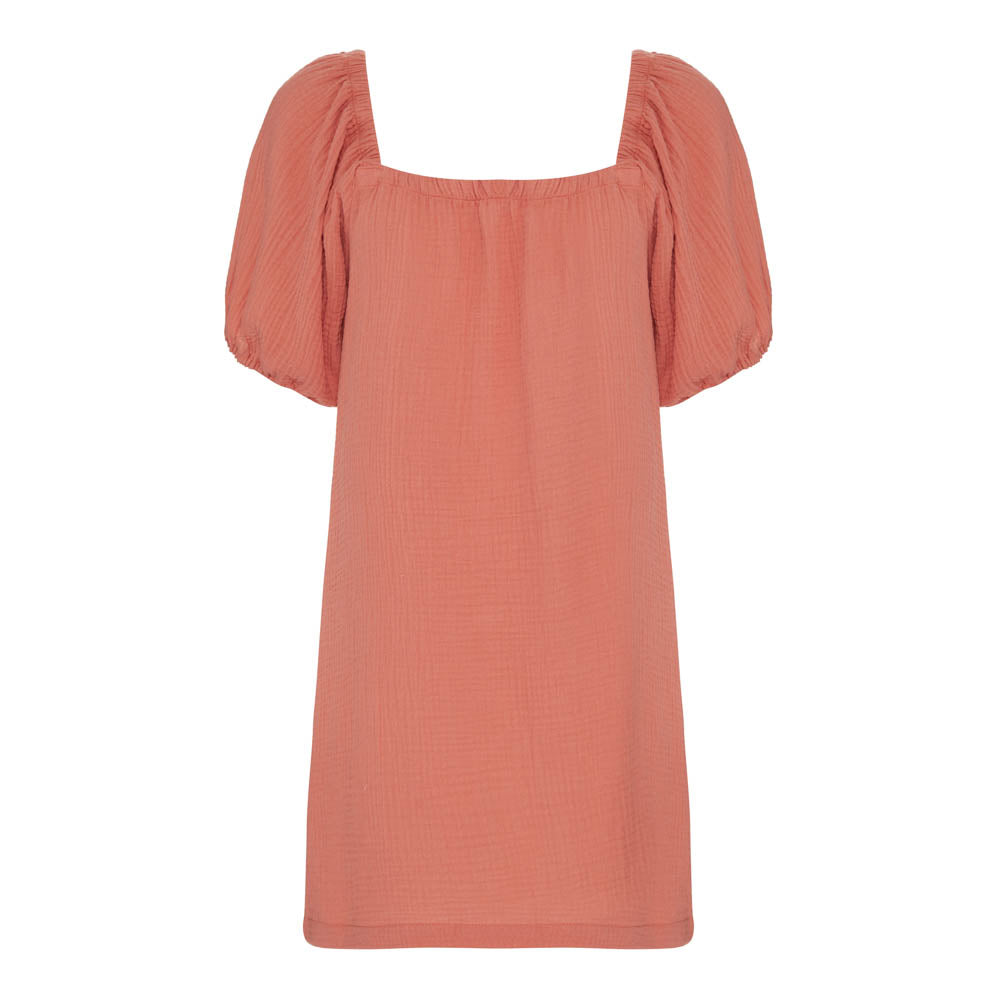 O Vestido Cecília possui decote reto com elástico embutido, comprimento acima do joelho, shape solto e mangas bufantes. Confeccionado em algodão.