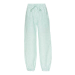 A calça Simona, confeccionada em tecido misto de algodão, possui modelagem cenoura, cós com elástico e cordão para amarração, bolsos frontais e posteriores e elástico na barra.