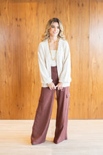 O twin set Martina, confeccionado em tricô, é composto por duas peças. Cardigan com modelagem reta de mangas longas com punhos e abertura frontal. Cropped "tomara que caia" com decote reto com elástico para sustentação e barra com punho.