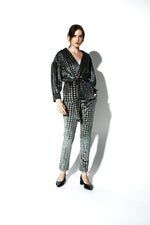 O Kimono Naomi, confeccionado em veludo, possui faixa ajustável na cintura, mangas amplas longas com pregas e punho afunilado.