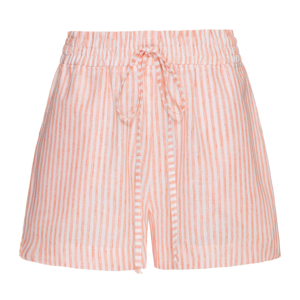 O shorts Daniela, confeccionado em tecido misto de algodão, possui cós ajustável com elástico e cordão para amarração, barra arredondada e bolsos frontais e posteriores.