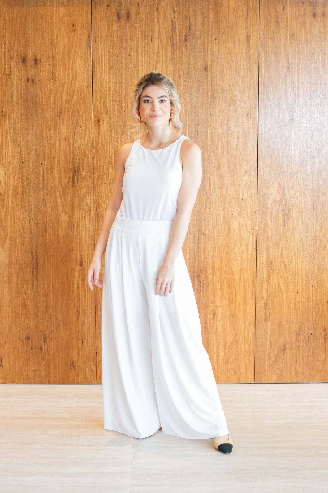 A regata Alice, confeccionada em Jersey, possui caimento ajustado ao corpo, decote em u e calças finas. Este modelo possui forro no busto do mesmo tecido.