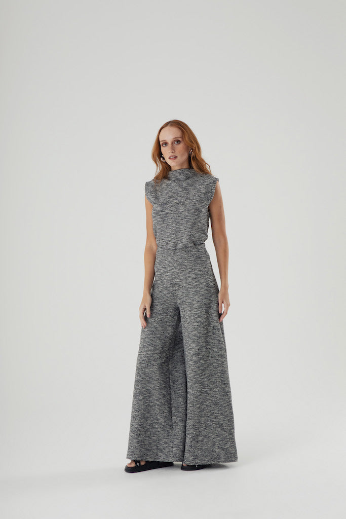 A Calça Moema, confeccionada em malha de algodão, possui modelagem de cintura alta com fechamento posterior por zíper invisível, que valoriza a silhueta e proporciona o ajuste perfeito. O corte amplo, com modelagem pantalona, assegura muita liberdade de movimento e o tecido leve e respirável garante conforto ao longo de todo o dia.