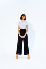 A Blusa Allana, possui gola alta com recorte posterior vazado com lastex aplicado e detalhamento de babado. Modelagem de mangas curtas e amplas, com caimento reto e fechamento posterior por botões forrados. Confeccionada em crepe.