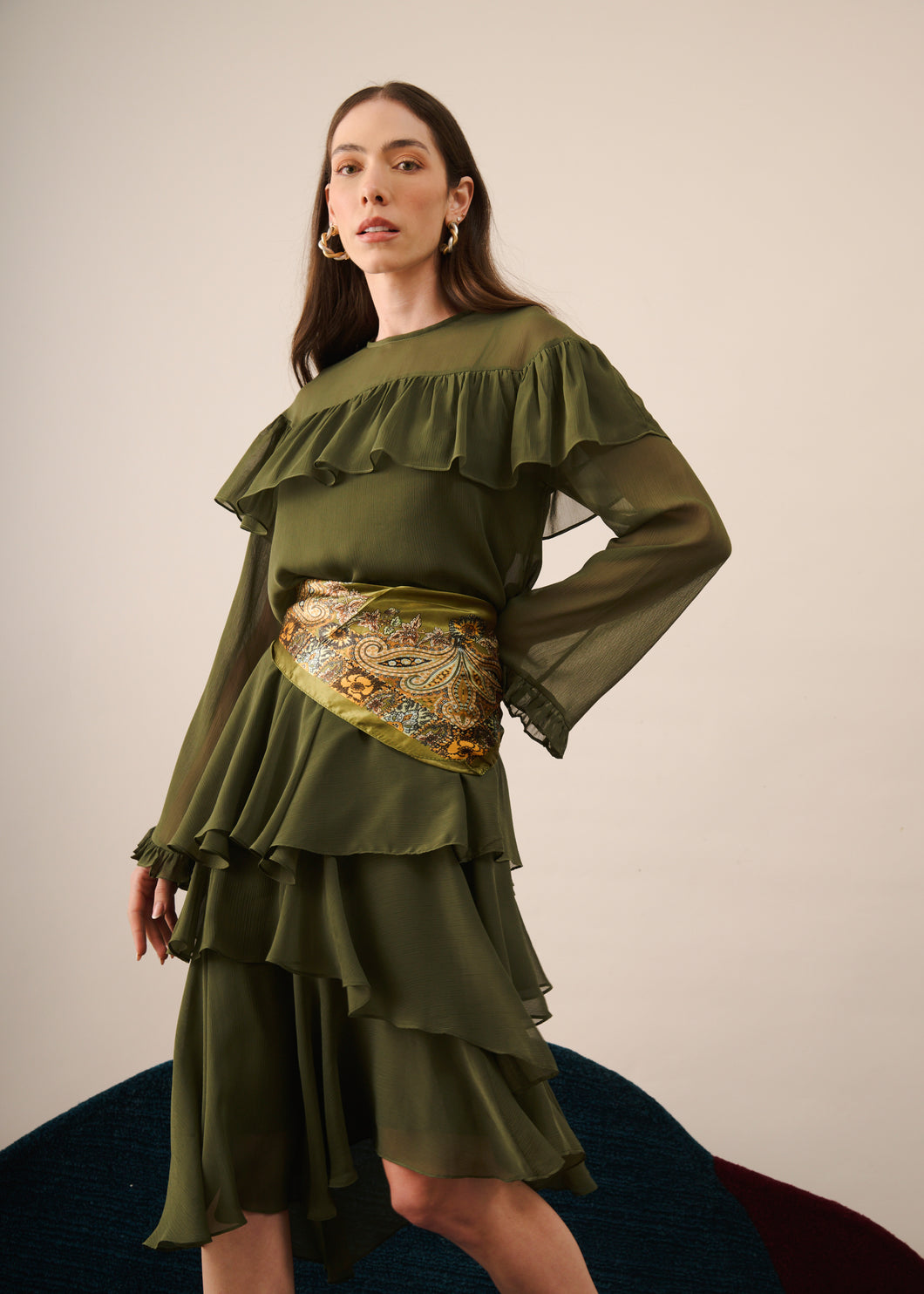 Confeccionada em chiffon, a Blusa Graziela possui modelagem fluida com leve plissado que valoriza o movimento do tecido e reforça a delicadeza da peça. A transparência sutil do material confere leveza ao visual, equilibrada pela construção e pelos acabamentos.