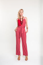 A Calça de alfaiataria Andrea, possui modelagem Clochard de cintura alta e prega no cós como detalhe. Confeccionada em crepe leve, a peça possui cinto-faixa removível e bolsos laterais.