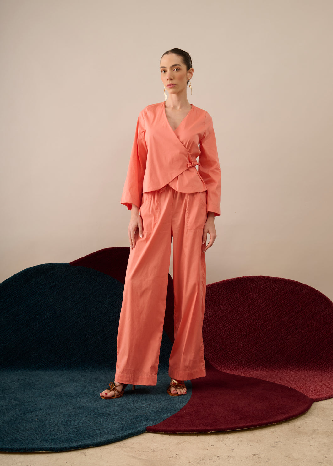 A Calça Celina é confeccionada em tricoline, proporcionando estrutura leve, toque macio e caimento fluido.