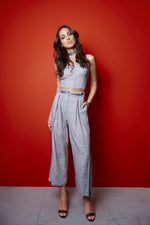 A Calça Chess possui modelagem de cintura alta com fechamento de zíper na parte da frente, botão e colchete internos e prega. Confeccionada em Viscose com desenho Xadrez Príncipe de Gales, esta calça pode ser usada tanto em produções mais formais quanto descontraídas com t-shirt e tênis.