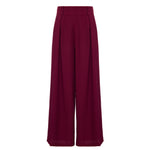 A calça pantalona Eve possui cintura alta com fechamento lateral por zíper invisível, bolsos laterais e aplicação de passantes. Confeccionada em Crepe apresenta prega central na parte da frente.