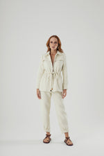 A calça Higienópolis é a união perfeita entre elegância e conforto. Confeccionada em tecido encorpado com leve textura tipo "tweed", ela traz um toque sofisticado mesmo em produções descomplicadas. O modelo apresenta cintura alta, cós largo estruturado, fechamento lateral por zíper e caimento levemente afunilado com acabamento franzido nas barras. Nas costas, os bolsos aplicados reforçam o estilo utilitário com charme.