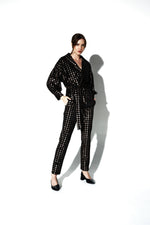 A Calça Naomi possui modelagem de cintura alta com passantes na cintura, fechamento lateral por zíper invisível e caimento ajustado ao corpo. Confeccionada em veludo.