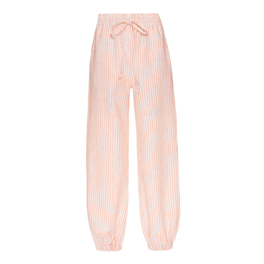A calça Simona, confeccionada em tecido misto de algodão, possui modelagem cenoura, cós com elástico e cordão para amarração, bolsos frontais e posteriores e elástico na barra.