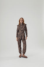 A Camisa Wild é confeccionada em tecido de viscose e linho, com estampa de leopardo desenvolvida exclusivamente por nós. Sua modelagem é de mangas compridas com recortes sobrepostos nos ombros e gola alta. Possui fechamento frontal por botões e recorte na cintura. Esse modelo vem acompanhado de faixa no mesmo tecido para o ajuste na cintura.