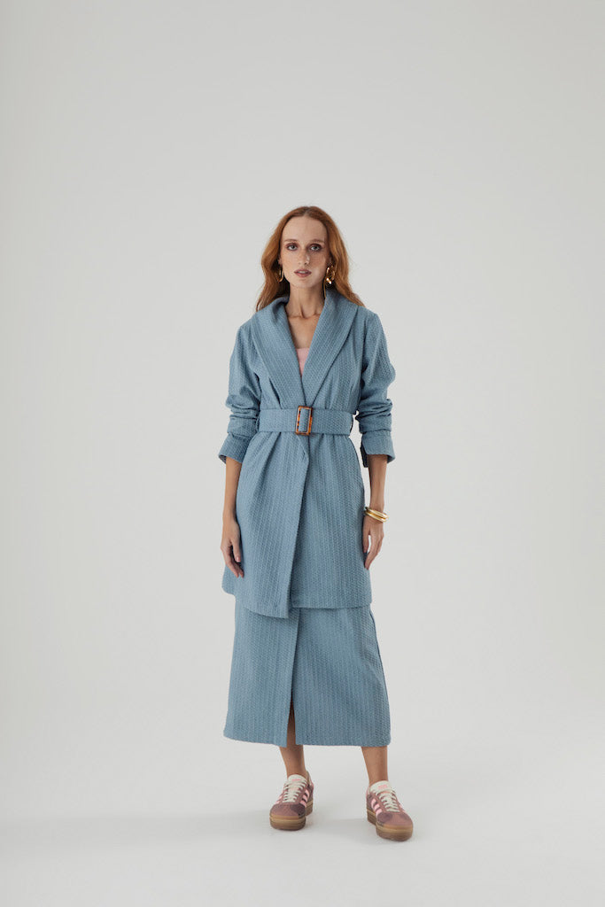 O trench coat Vila Mariana apresenta design elegante e atemporal. O modelo possui gola ampla e lapela dobrada trazendo sofisticação e conforto, mangas longas com acabamento delicado nos punhos e cinto com fivela para o ajuste na cintura.