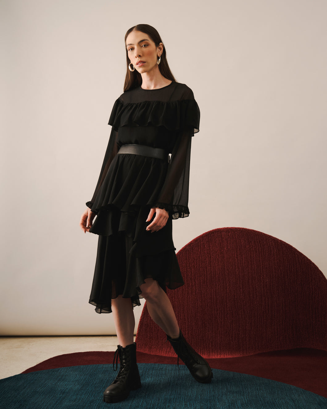 Confeccionada em chiffon, a Saia Graziela possui modelagem fluida com plissado delicado que valoriza o movimento natural do tecido. A construção em camadas cria volume suave e profundidade, trazendo leveza e dinamismo ao visual.