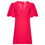 O vestido Aisha, confeccionado em crepe, possui decote "V", mangas curtas bufantes e comprimento acima do joelho. Fechamento posterior por zíper invisível.